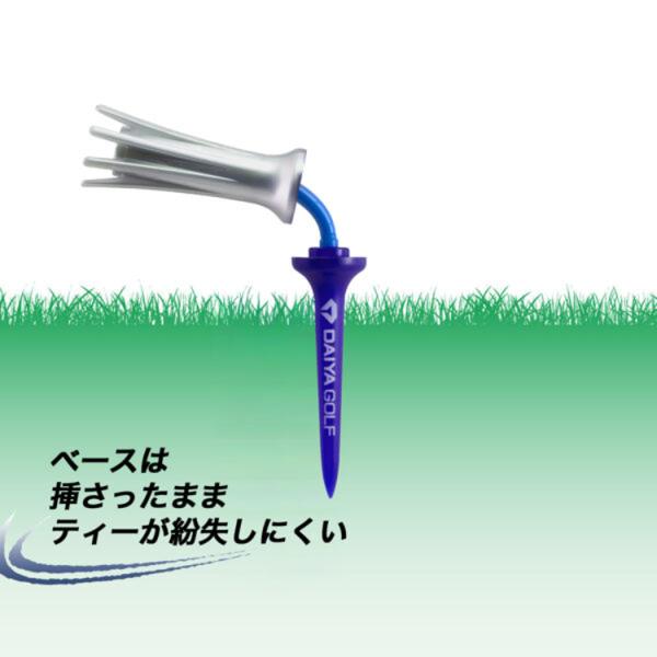 「首振り機能」にすることにより、ティーのベース(下部)は挿さったままなので、ティーが紛失しにくい構造です。ティーが飛んでいかないので、ティーショット後に探す手間がなくなります。