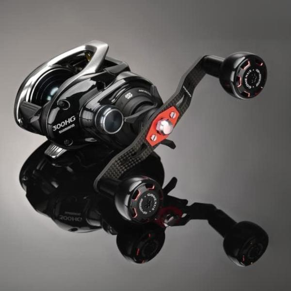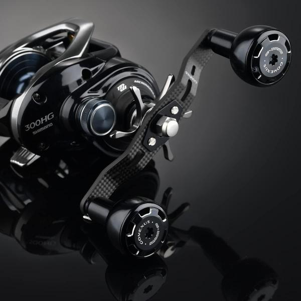 ベイトリール パワー ハンドル ダブル リール カスタム パーツ 7×4mm 8×5mm 穴対応 シマノ Shimano ダイワ Daiwa カーボン 105mm アルミ製 ノブ付き Gomexus