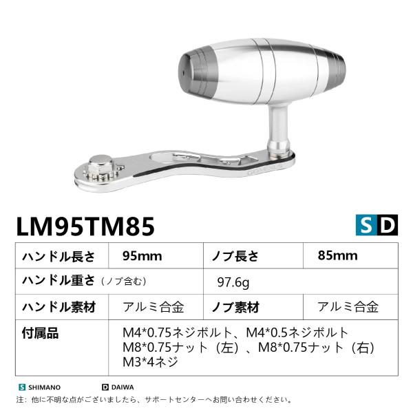 ベイトリール パワー ハンドル アルミ製 95mm リール カスタム パーツ ダイワ Daiwa シマノ Shimano 8×5mm 用 85mm Tノブ 付き ゴメクサス Gomexus