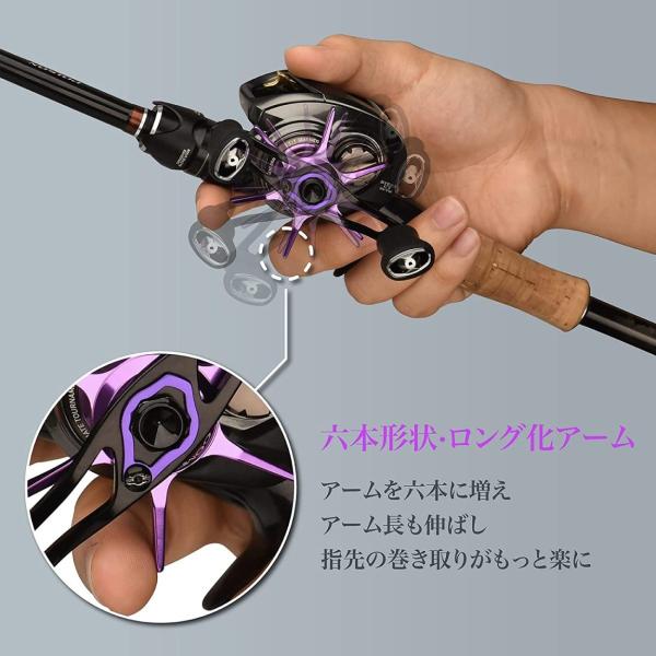 アーム数を六本に増え、長くなったデザインは指一本でハンドル操作を可能にする、パーミングしながら指で糸ふけを巻き取る作業がやりやすくなり、ズレを軽減。