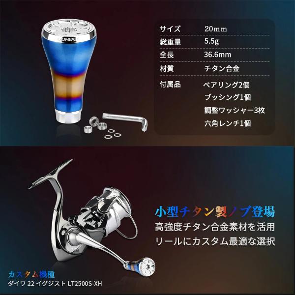 ゴメクサス パワーハンドルノブ 20mm チタン製 シマノ Shimano TypeA ダイワ Daiwa Type S リール カスタム パーツ 交換