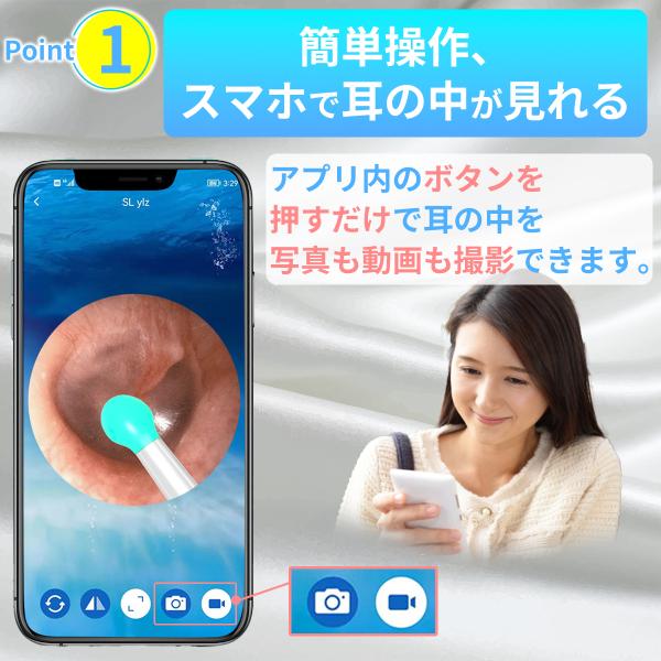 耳かき カメラ付き iphone対応 Android スマホ 800万画素 温度制御 充電式 WiFi接続 イヤースコープ LEDライト耳かきスコープ