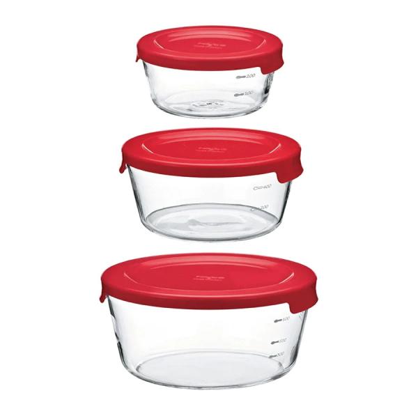 ハリオ 耐熱ガラス製保存容器丸3個セット レッドMST-3018-R〇コンテナ 丸 赤 保存 耐熱ガラス製 HARIO
