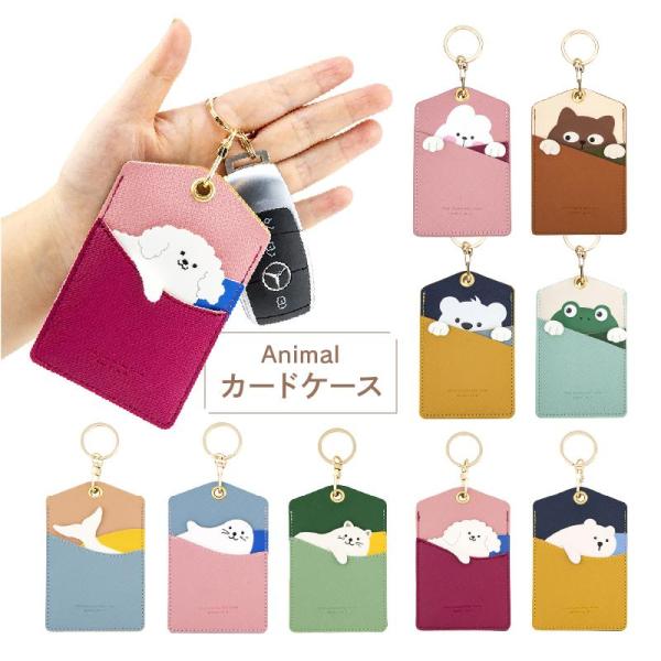パスケース かわいい 革 小物 レディース 定期 入れ 高校生 ICカード 可愛い アニマル キャラクター キーホルダー 薄型 両面 スリム 通勤 通学 PASMO suica