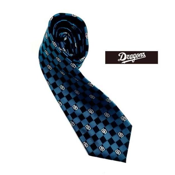 プロ野球球団ネクタイ 中日ドラゴンズ ジャガード織ネクタイ CDロゴ エメラルドブルーチェック-235