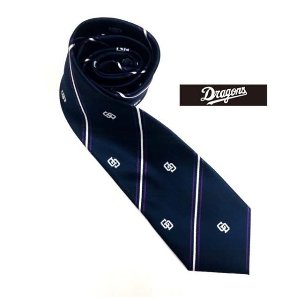 プロ野球球団ネクタイ 中日ドラゴンズ ジャガード織ネクタイ CDロゴ ネイビーパープル-378