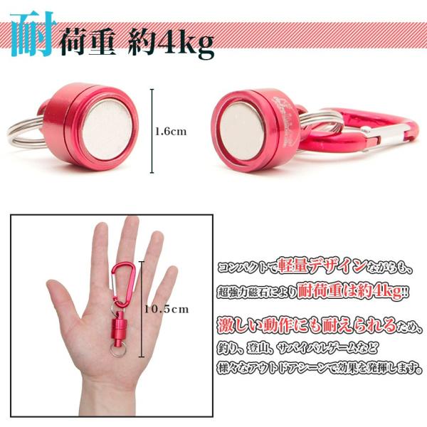 マグネットリリーサー カラビナ フック付き 超強力 小型 アルミ 釣り 登山 耐荷重4kg