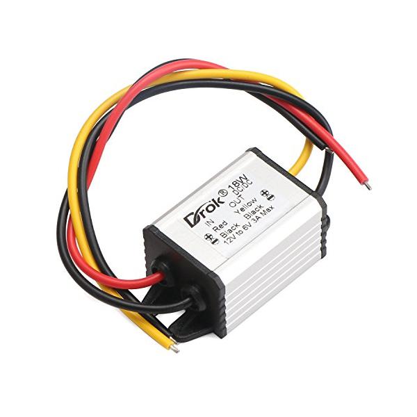 DROK 12V?6Vコンバータ、車載用コンバータDC 9V-22V 12V?DC 6V降圧電圧レギュレータ3A 18W防水高効率ステップダウン電圧モ