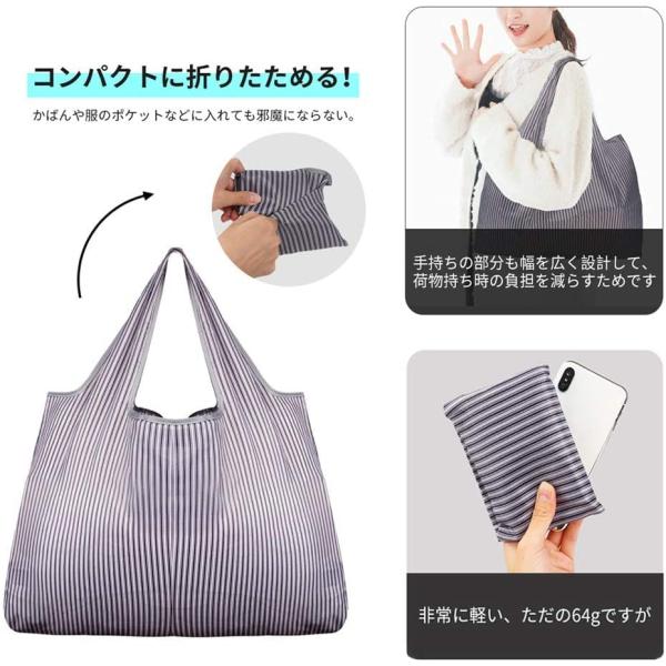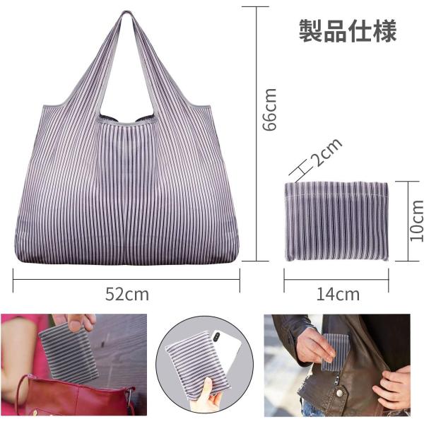 バッグサイズ:52*66 センチ、折りたたみサイズは2*10*14 センチで、重さは20 キロまで耐えられます。丈夫で長持ちします。