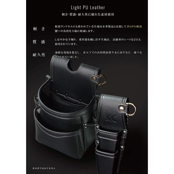 特徴1:本革製品と比較して約40%軽量素材で、腰への負担を大幅に軽減
