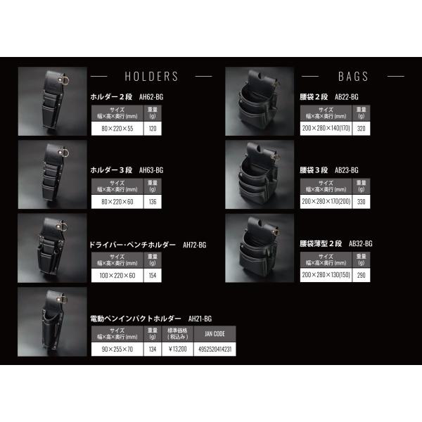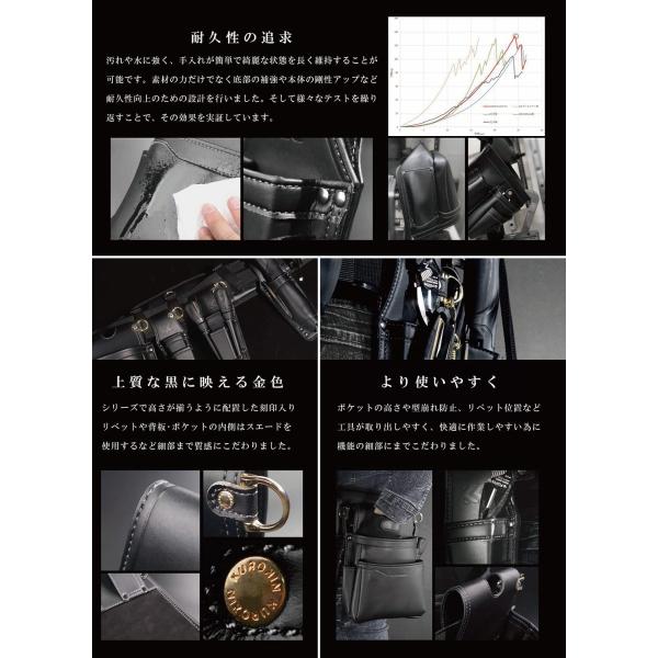 商品名:フジ矢 腰袋3段 黒金 LIGHT PU LEATHER SERIES AB-23BG