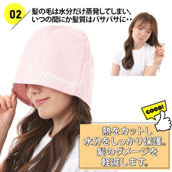 【 大切な髪を保護 】高温&乾燥でダメージを受けてしまう髪から熱をカットし水分を守り、髪を傷みにくくします。