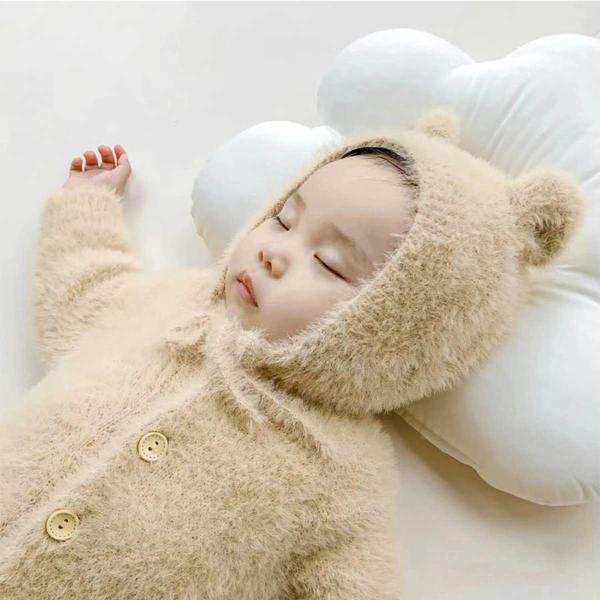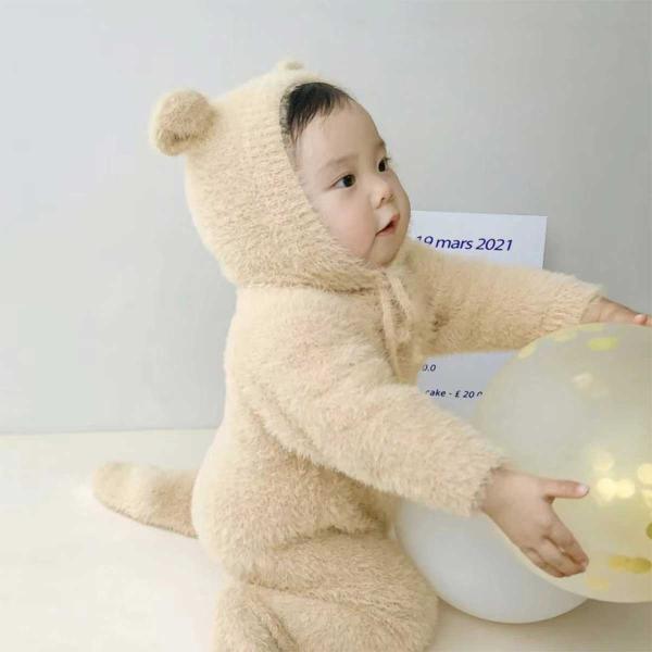 【 ふわモコ超可愛い 】もこもこシルエットがとっても可愛らしいクマちゃん風ロンパース♪くまの赤ちゃんみたいにフワフワで、思わずギューっとしたくなるキュートさです。