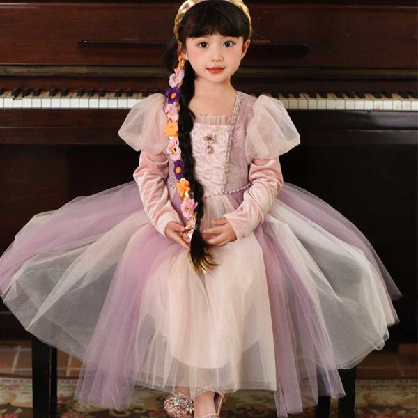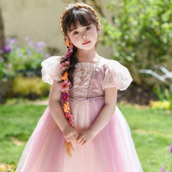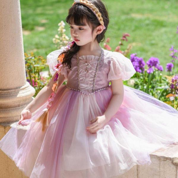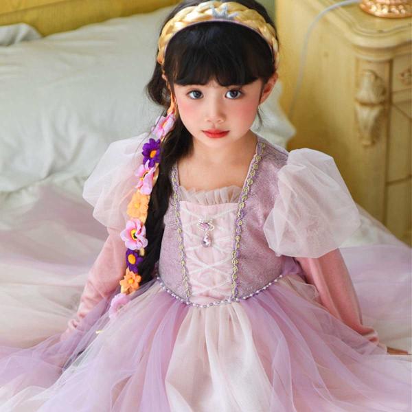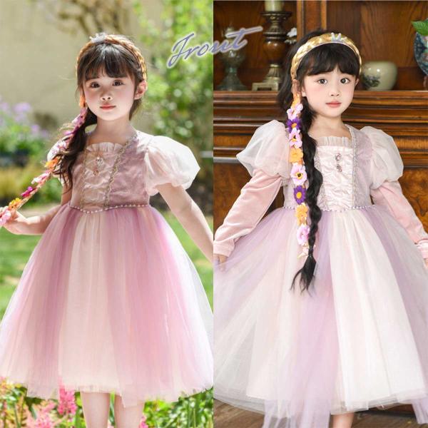 【ウィッグセット】ラプンツェル ドレス キッズ 子供 衣装 プリンセス ドレス 長袖 半袖 コスチューム コスプレ ハロウィン Dハロ クリスマス