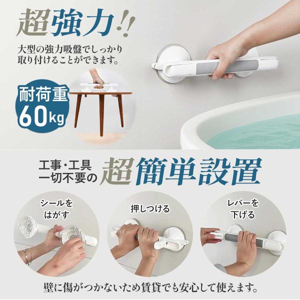 【工具不要・簡単取り付け】介護 手すり 浴室 風呂 トイレ 手すり 立ち上がり 入浴 補助 介護用 高齢者 歩行補助 転倒防止 強力吸盤 ワンタッチ 簡単 安全