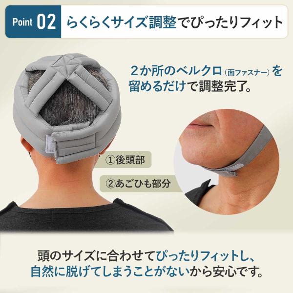 【 転倒から頭をしっかりガード 】不慮の転倒時、頭をしっかりと保護するヘッドギアです。高齢者の事故防止、リハビリ時の怪我防止に役立ちます。