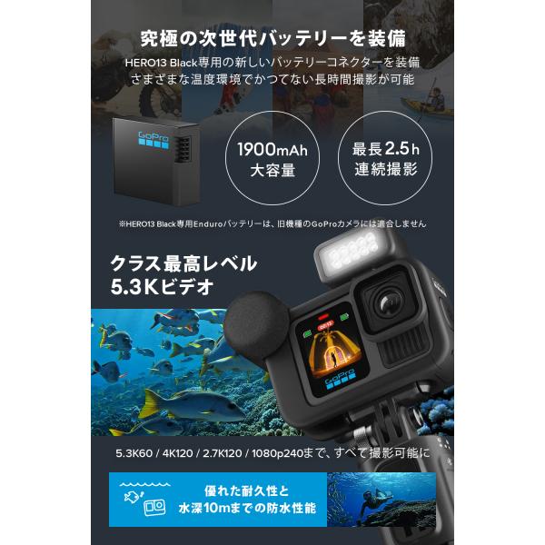 【2年保証付】公式ストア限定 GoPro HERO13 Black + デュアルバッテリーチャージャー + Enduroバッテリー 3個 + SDカード + 充電口付サイドドア + 日本語説明書