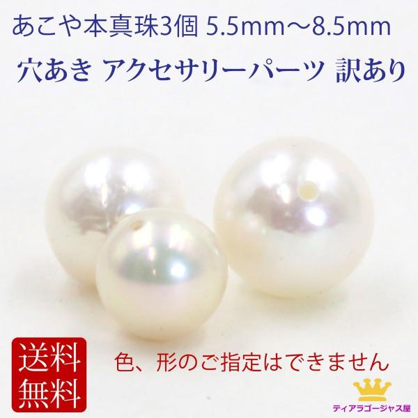パール 3個 真珠 あこや本真珠 6.5mm〜8.5mm 訳あり 手芸 アクセサリーパーツ 穴あき