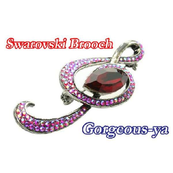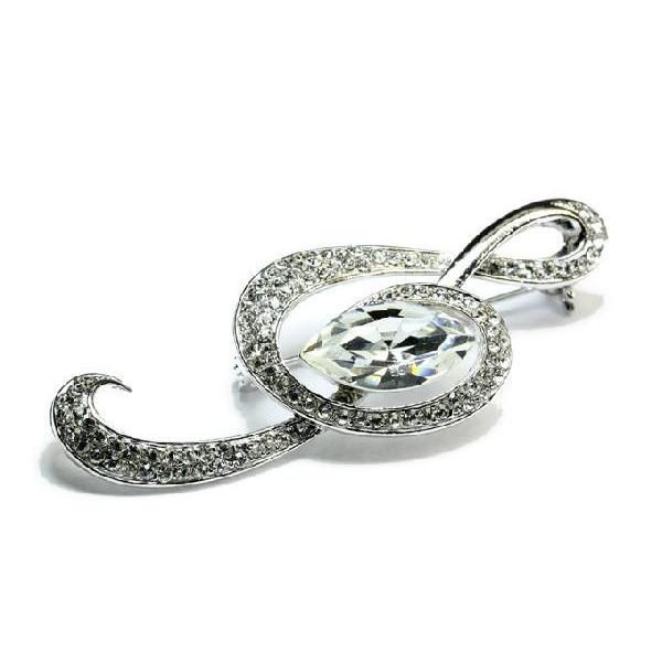 ブローチ ト音記号 音符 スワロフスキー 音楽系アクセサリー マーキーズカット 透明クリスタル ホワイト ブラック レッド プレゼント