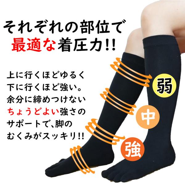 5本指 ソックス 五本指 靴下 着圧 ハイソックス 無地 メンズ レディース ロング 黒 冷えない