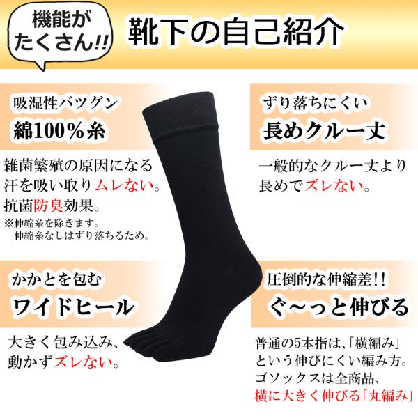 関連ワード: 5本指 ソックス 五本指 靴下 抗菌 防臭 水虫 消臭 冷え取り ギフト プレゼント メンズ 敬老の日 父の日 バレンタイン クルー丈 ロング 冬 防寒 暖かい 大きい 綿 綿100 コットン コットン100% 保温 仕事 ビジネス 仕事用 黒 無地 ブラック 3足セット
