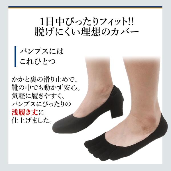 五本指 ソックス 5本指 靴下 レディース カバー 浅い 綿 100 黒 パンプス ブラック 無地 夏用