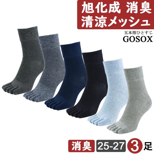 五本指 ソックス 5本指 靴下 メンズ 厚手 黒 ブラック 綿 100 無地 ハーフ丈 消臭 旭化成