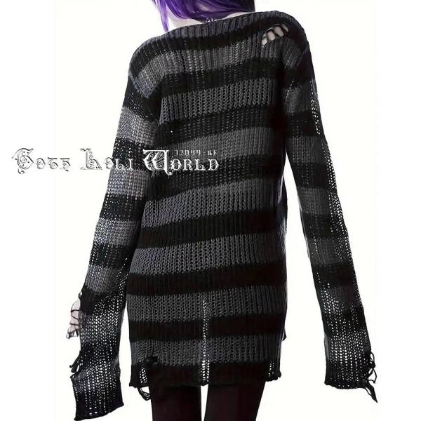 ゴスロリワールドCE-PM001 オーバーサイズダメージ加工 ニットソー ニット セーター 男女兼用 モード系 ファッション