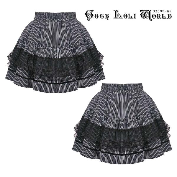 ゴスロリワールド KW366 ゴシックファッション ストライプ柄レース ミニスカート ゴシック ゴスロリ ロリータ ロリィタ ビジュアル系 地雷系