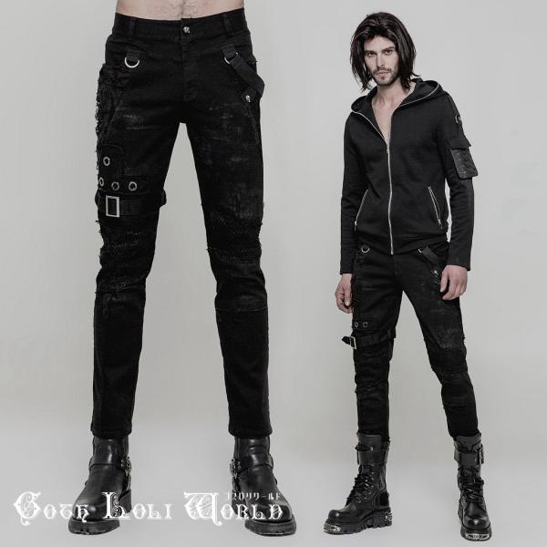 ゴスロリワールド WK-319NCM-BK パンクダメージ汚し風 ロングパンツ 黒色 メンズ ゴシック ゴスロリ パンク ビジュアル系 V系