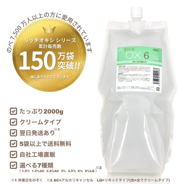 【リッチオキシ2L×12袋セット】(1.5、1.5AC、2.4AC、3、4.5、6、6LQ選択可,送料無料,初回お試し価格,高品質低価格,自社工場製造,業務用オキシ,ヘアカラー2剤)