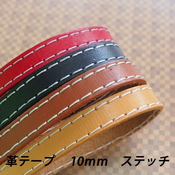 レザークラフト 革テープ 革レース /ステッチ付/ 10mm 1m単位 切り売り 10.0mm レザーコード 皮 バッグ ベルト バッグ持ち手 ストラップ ハンドメイド