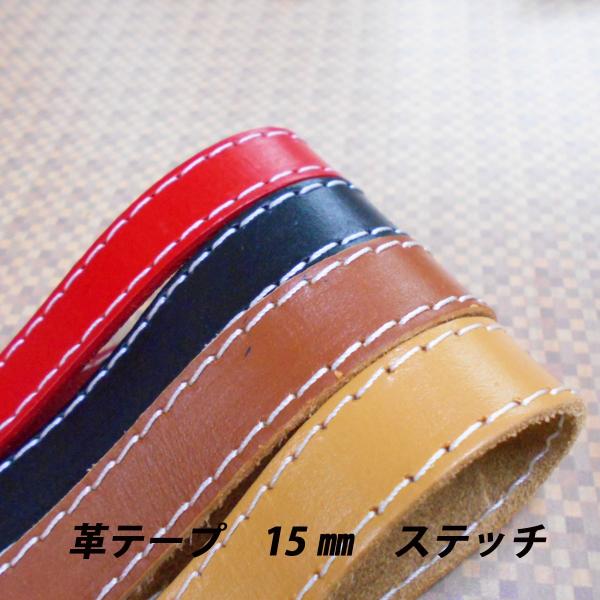 レザークラフト 革テープ 革レース /ステッチ付/ 15mm 100cm 切り売り レザーコード 皮 バッグ ベルト バッグ持ち手 ストラップ ハンドメイド