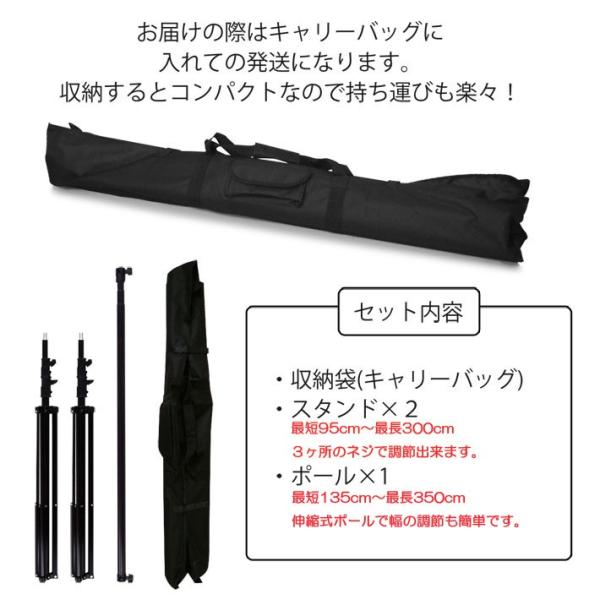 期間限定2,000円OFF【即日発送】[TenBright公式販売元] 撮影用 背景スタンド ワイドサイズ 横幅最大350cm 送料無料 横幅伸縮自在ポール 撮影機材 ST-1-W