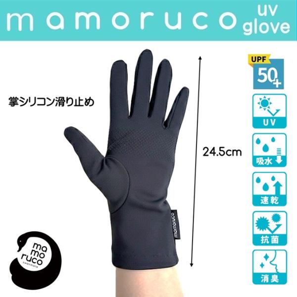 mamoruco UV手袋 UVグローブ 紫外線対策 日焼け防止 UV遮蔽率95%以上 吸水速乾 抗菌防臭 銀イオン練り込み UPF50+ シリコン滑り止め付 掌側も日焼け防止 24.5cm