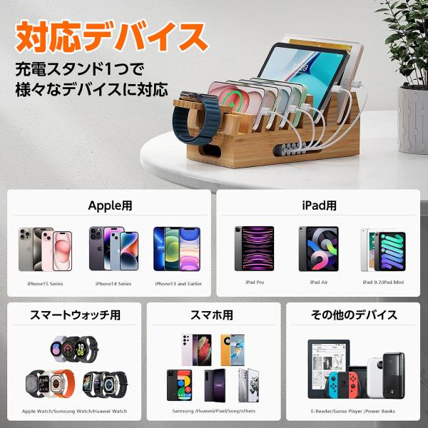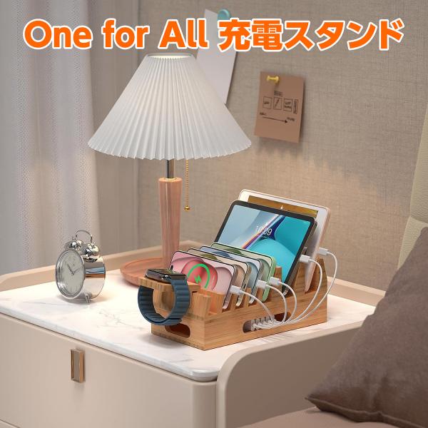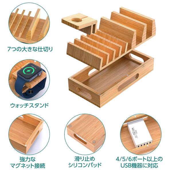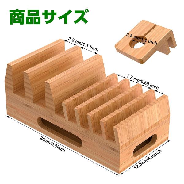 充電スタンド 竹製 卓上ホルダー 充電ステーション モバイル機器をスッキリ収納 木製 天然 iPhone/iPad/Galaxy/Android各種適合