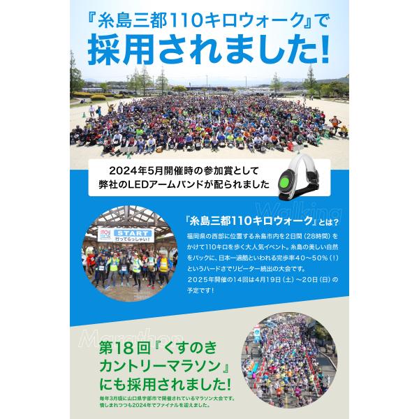 ランニングウェアの上から簡単装着。LEDセーフティバンド・安全ライト・ランニングライトという名称で販売されている商品は多々ありますが、こちちらの商品は高輝度・長寿命・軽量で非常に使いやすいです。