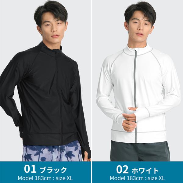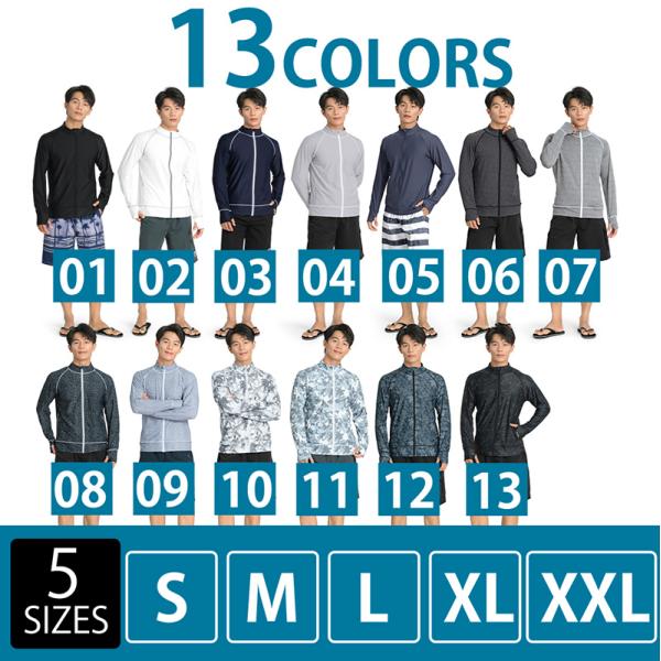 ファスナー付 ポケット ラッシュガード メンズ 長袖 フードなし フード無し ジップアップ 水着 大きいサイズ uvカット uv upf50+ 紫外線対策 日焼け予防