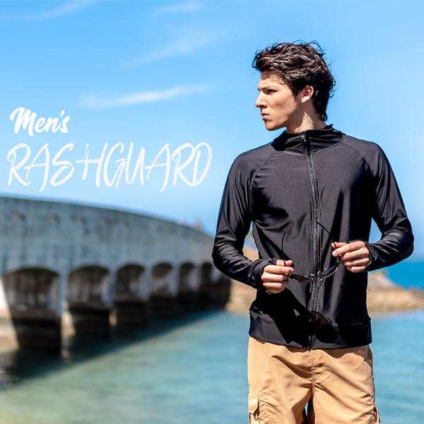 ファスナー付 ポケット ラッシュガード メンズ 長袖 フード付き パーカー uvパーカー uvカットパーカー ラッシュパーカー