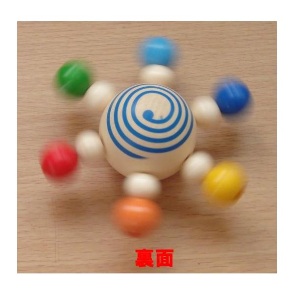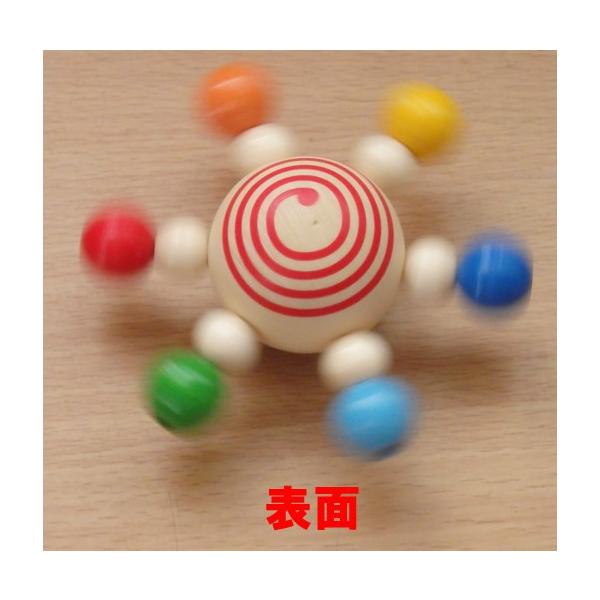 カラフルな色彩で、回すととても綺麗です。よくある普通のこまは持ち手が付いていて、回すのには指先の力を必要とするので、小さな子供が自分で回すのはなかなか難しいですが、スターコマはりのビーズ部分を手ではじくだけで回すことができるので、小さな子供でも簡単にこま回しを楽しむことができます。 表面と裏面の区別がなくどちらの面でも回るので小さな子供でも遊びやすくなっています。片面が青色の渦巻き模様で、もう片面が赤色の渦巻き模様になっています。