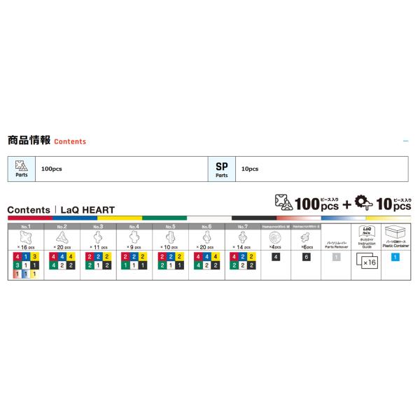 「LaQ ハート」はLaQ(ラキュー)と同じ7種類のパーツで何でもつくれる不思議なブロック!