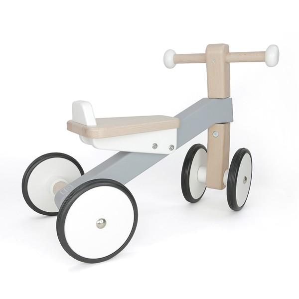 小さな子どもにとって自分のからだサイズの乗りものをはじめて操る感覚は冒険そのもの、大きくからだを動かすことはこのうえない喜び。しっかりとした重さのあるブナ材で倒れにくい安定感、自分で蹴ったぶんだけ前に進むからスピード調整もでき、脚力やバランス感覚を育みながら乗りもの遊びが楽しめます。
