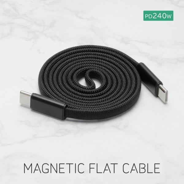 Type-C to Type-Cケーブル PD240W フラット マグネティック スパイラル マグネット 磁石 磁力 吸着 1m