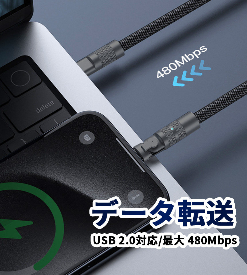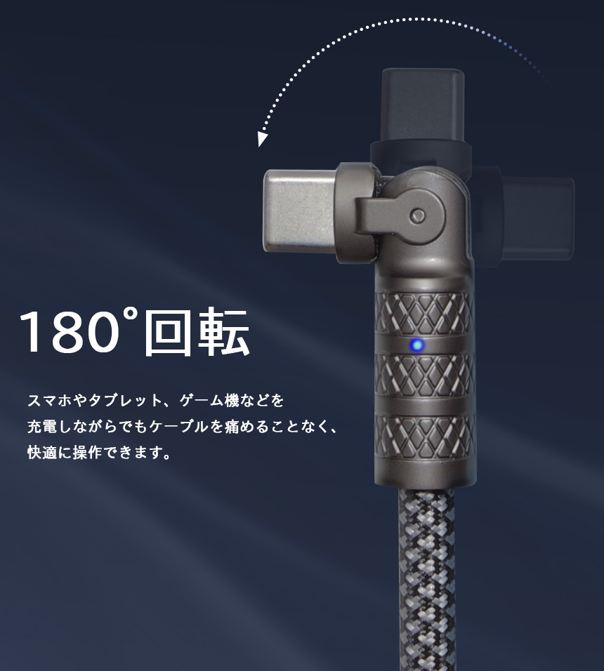 充電ケーブル Type-C to Type-C PD対応 急速充電 データ転送 180° 回転 タイプC 角度変更 スマホ スマートフォン PC タブレット ゲーム機 充電