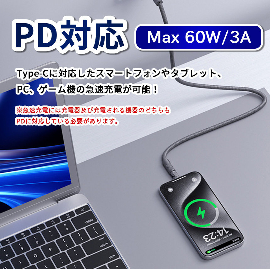 USB 充電 ケーブル Type-C to C PD対応 データ転送