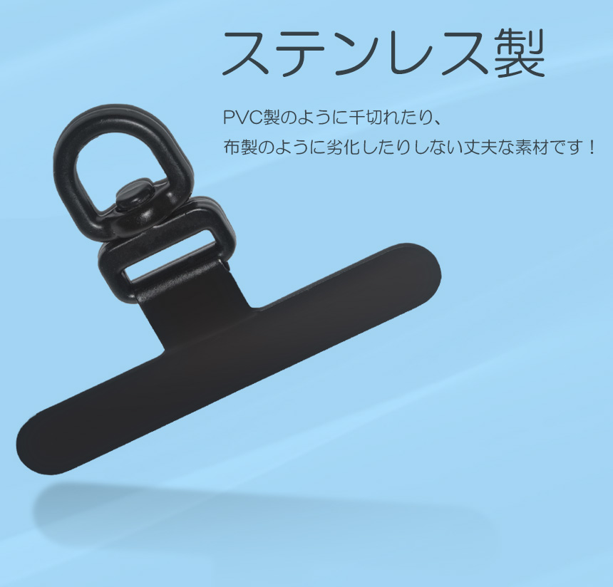 スマホ ストラップホルダー ステンレス シート 薄い 0.18mm 360° 回転 薄型 極薄 ストラップホール 増設 携帯 ブラック 丈夫 全機種 目立たない