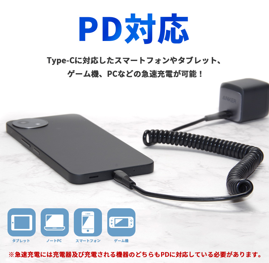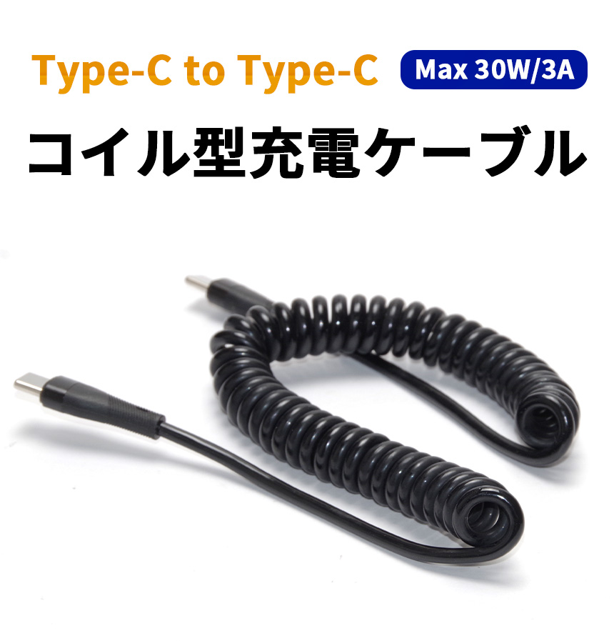 type-c to type-c ケーブル PD対応 急速充電 充電ケーブル C to C 伸びる コイル タイプC スパイラル コード