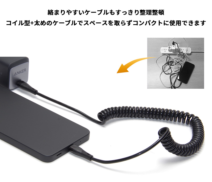 伸縮自在のType-C to Type-C コイル型充電ケーブルが登場!