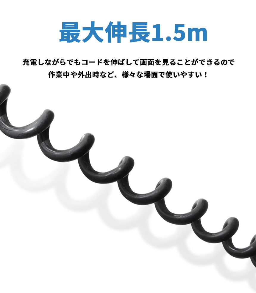 充電しながらでもコードを伸ばして画面を見ることができるので