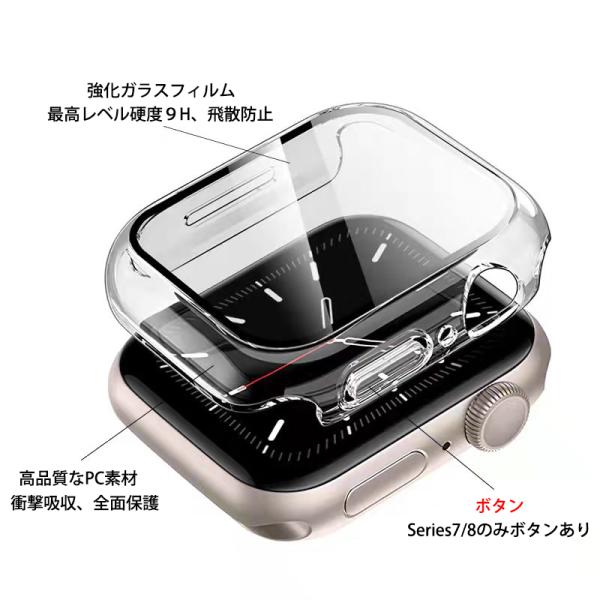 アップルウォッチ カバー 保護 ケース Apple Watch Ultra 11 10 9 8 7 SE 6 5 4 3 2 1 49mm 46mm 45mm 44mm 42mm 41mm 40mm 38mm 透明 ガラス フィルム